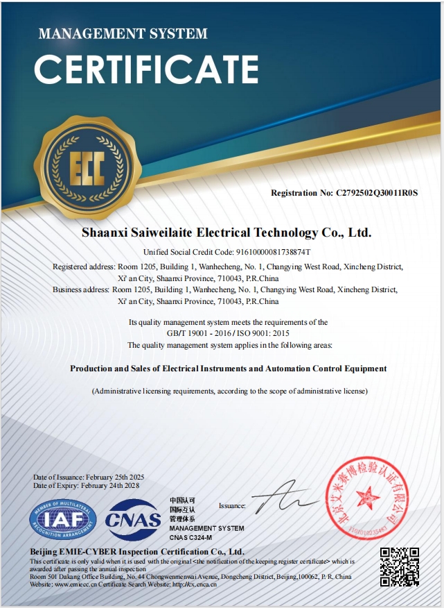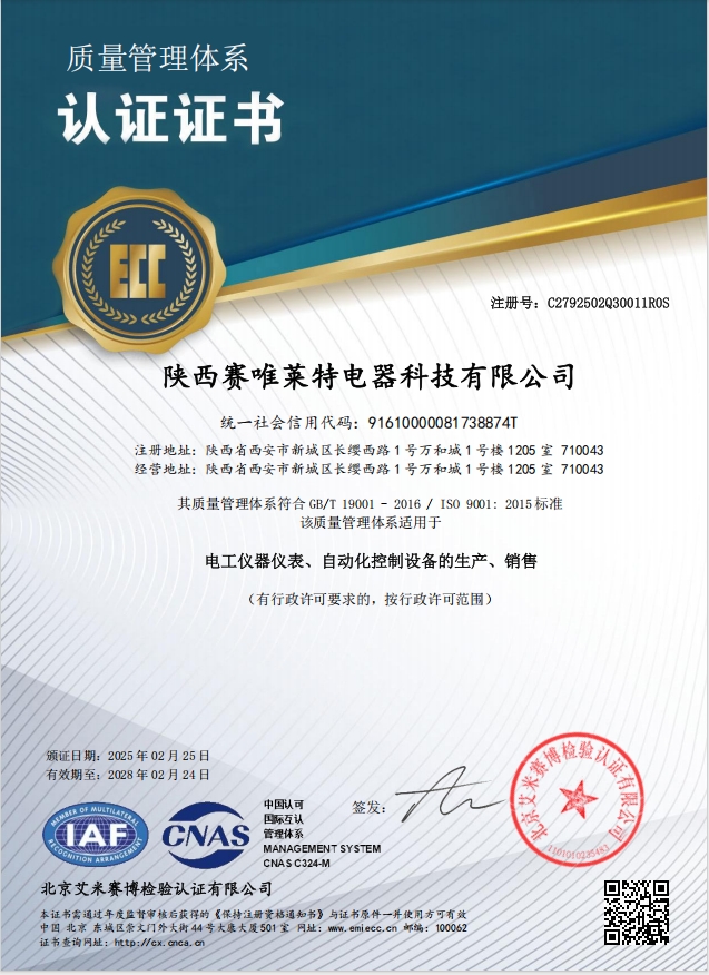 陜西賽唯萊特電器科技有限公司曾取得ISO9001認(rèn)證